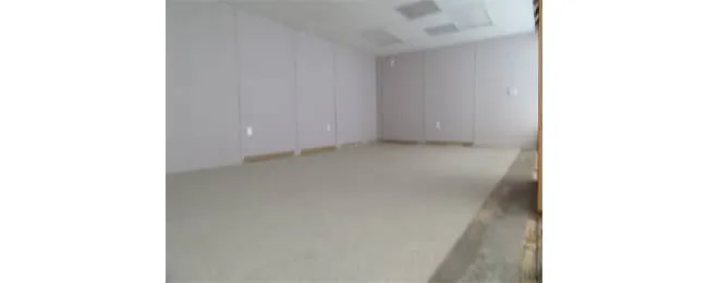 - Vinyl Covered Gysum Interior Walls with T-grid ceilings